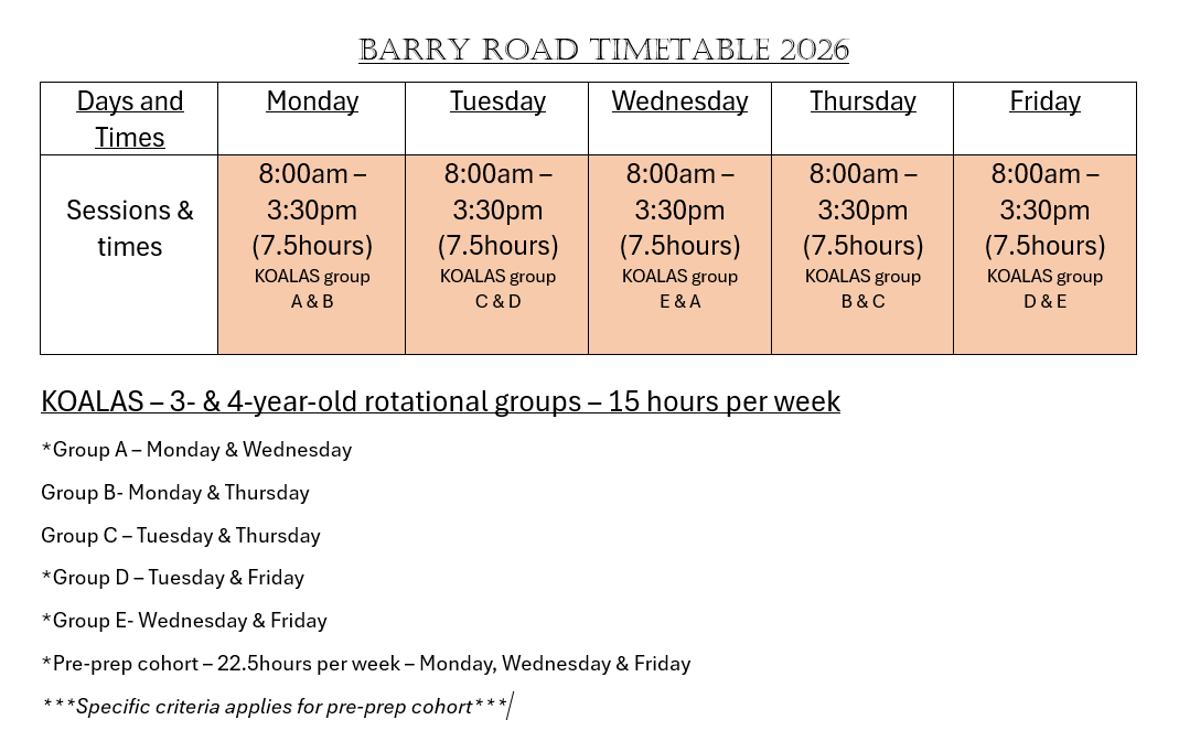 Barry Road Pre School operates on the same terms as Primary Schools.